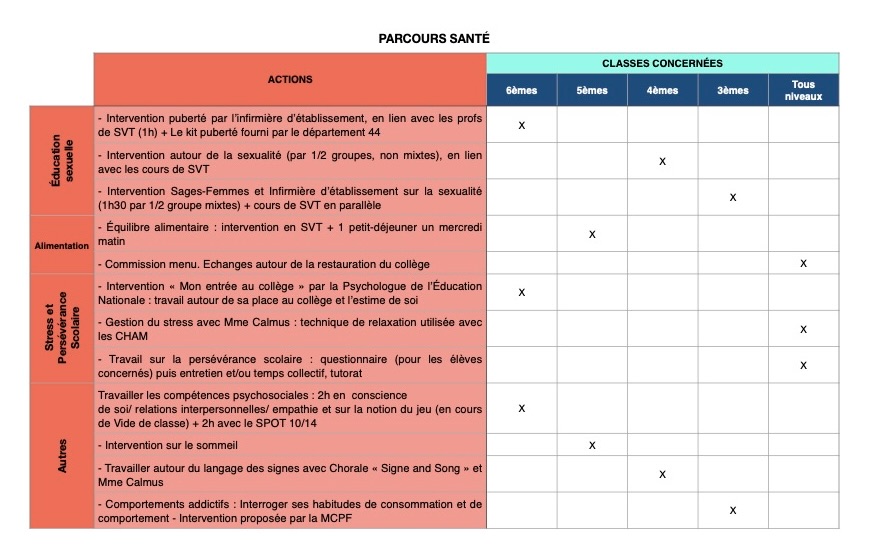 Parcours Santé : Éducation sexuelle, Compétences psychosociales, alimentation, Stress et persévérance scolaire