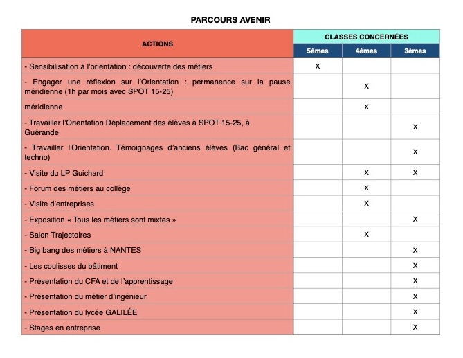 Parcours Avenir : Travaux sur l’orientation après le collège et sur l’orientation professionnelle