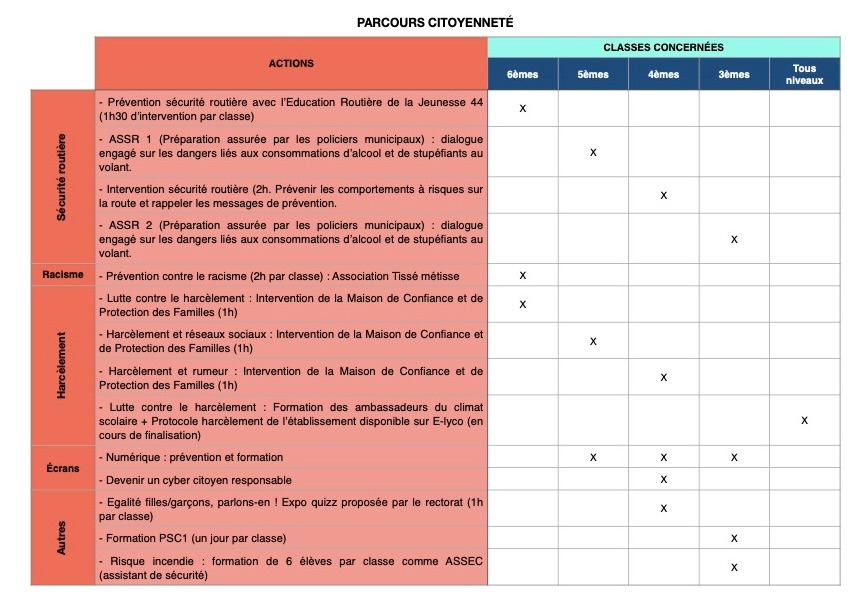 Parcours Citoyenneté : Sécurité routière, Racisme, Harcèlement, Ecrans et Égalité filles-garçons